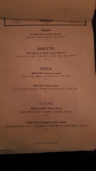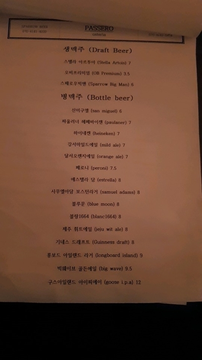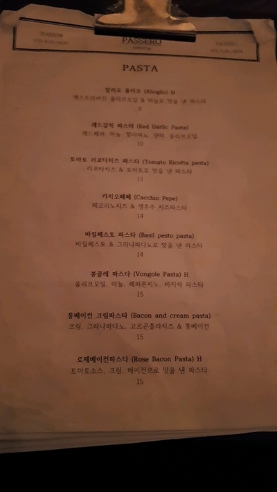 앞서 와인이 적혀있던 메뉴판 뒤에 스패로우가 안내되어 있었어요~!