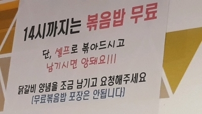그리고 중요!! 14시까지는 볶음밥이 무료랍니다. 닭갈비를 드시기만 했다면 종류 상관없고 주말도 됩니다.