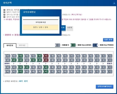 창가를 포함한 순방향 가운데로 예매했답니다.