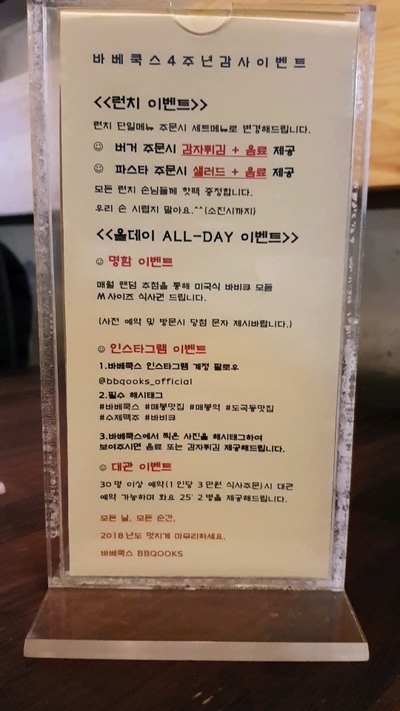 지금 바베쿡스에서는 여러가지 이벤트를 하고있던데 저희는 너무 배불러서 참여하지 않았지만