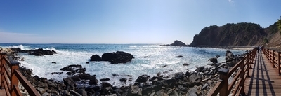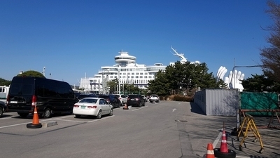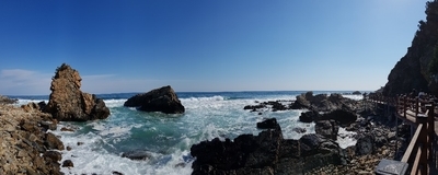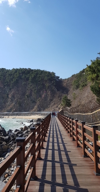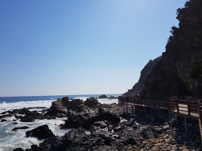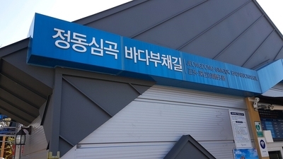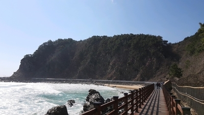 아까 정동진 해변에서 보았던 썬크루즈 리조트 근처까지 이동하면 바다부채길을 볼 수 있어요!