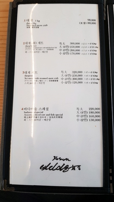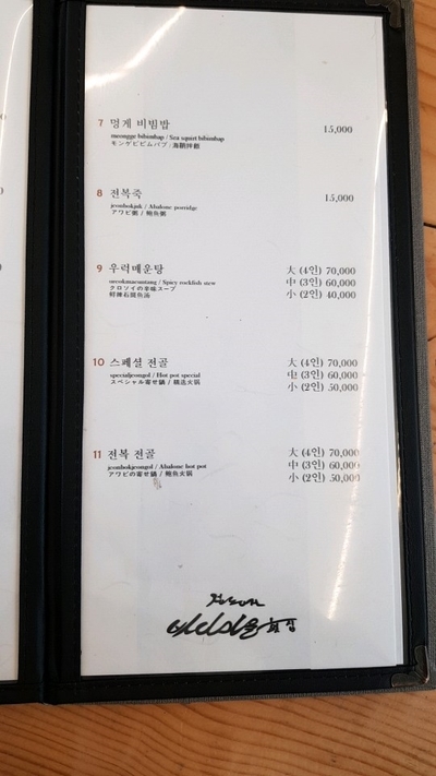 메뉴판입니다.