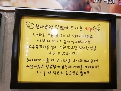 천사곱창을 맛있게 먹는 tip이 적혀 있네요.