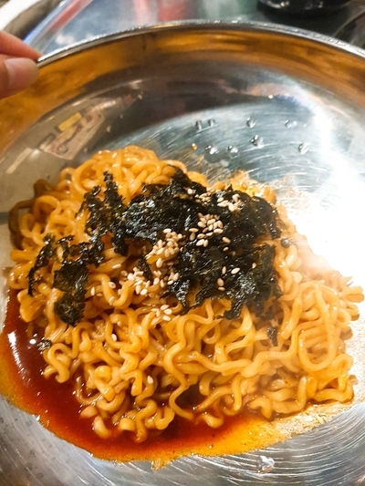 다소 느끼할 수 있는 곱창에 매콤한 불닭볶음면을 같이 먹으니 새롭고 곱창의 맛을 2배로 느낄 수 있었어요!