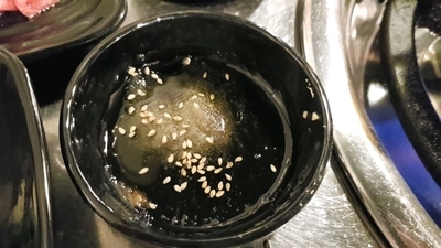 4. 앞에 있는 양념장에 곱창과 야채를 찍어준다! 고기를 다먹은 후 볶음밥은 필수!!