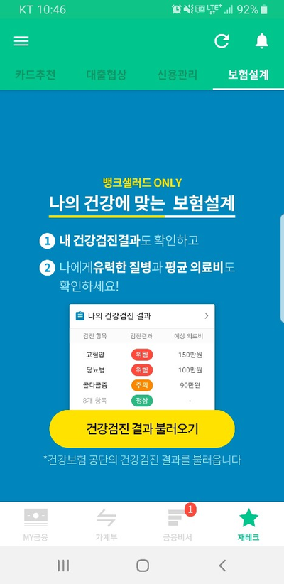 신용등급과 뱅크샐러드에서만 가능한 보험설계 또한 가능해요!