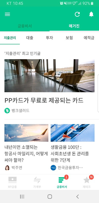 지출관리/대출/투자/보험/예적금에 대한 지식들을 볼 수 있고