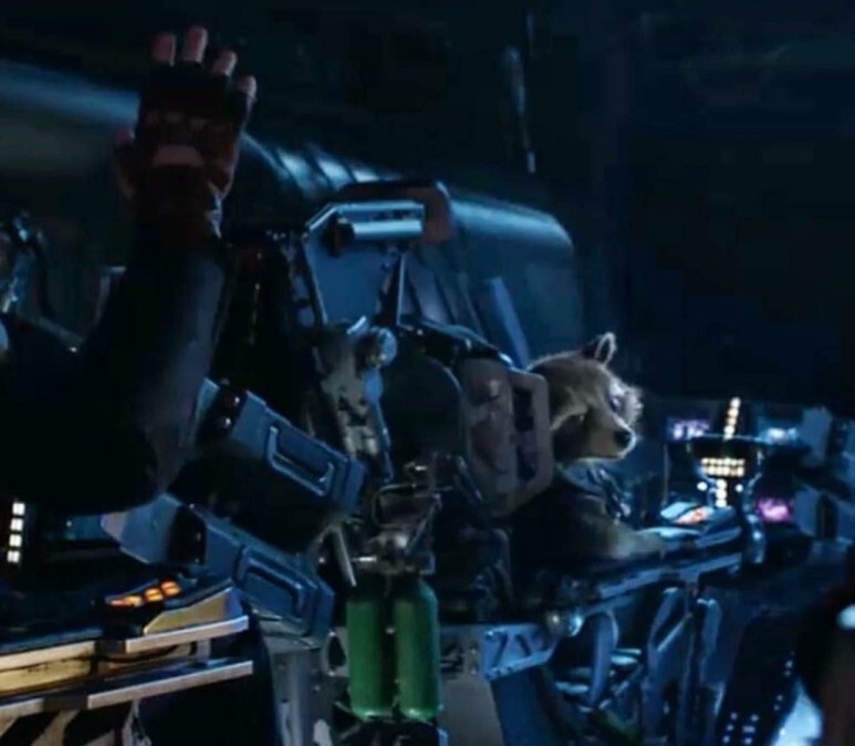 내용은 로켓이 우주에 처음 가는 사람 손들라고 하는 씬이라고 하네요.