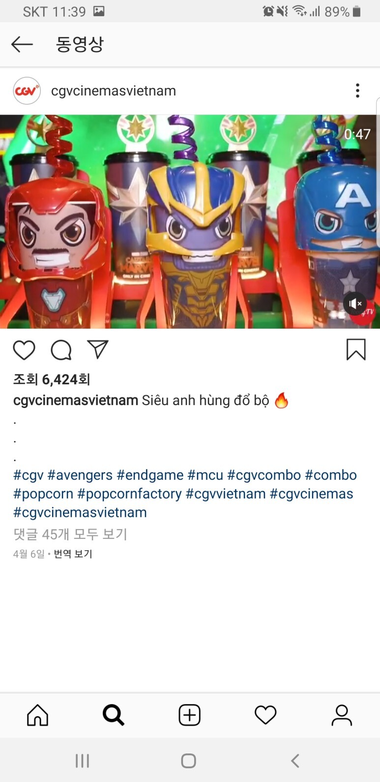 베트남에서 CGV 어벤져스 : 엔드게임 텀블러 이미지가 공개되었네요!