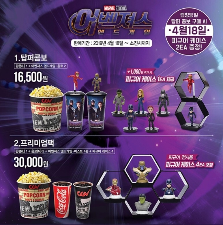 이번에 개봉하는 어벤져스 : 엔드게임의 콤보와 판매 지점 정보입니다.