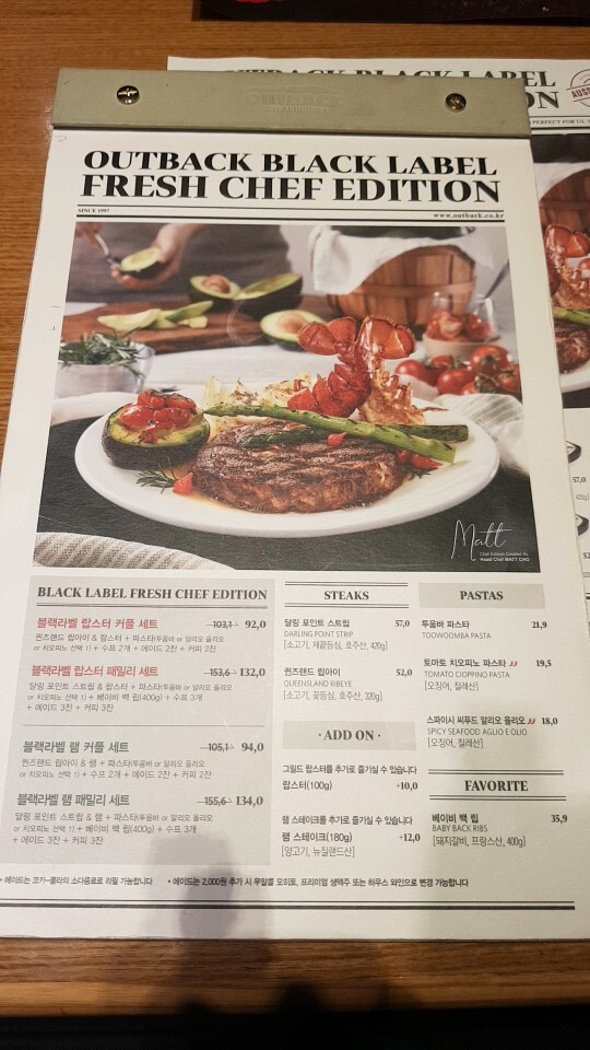 얼마전 있었던 아웃백 11,000원 할인권 2매 사용 후기입니다.