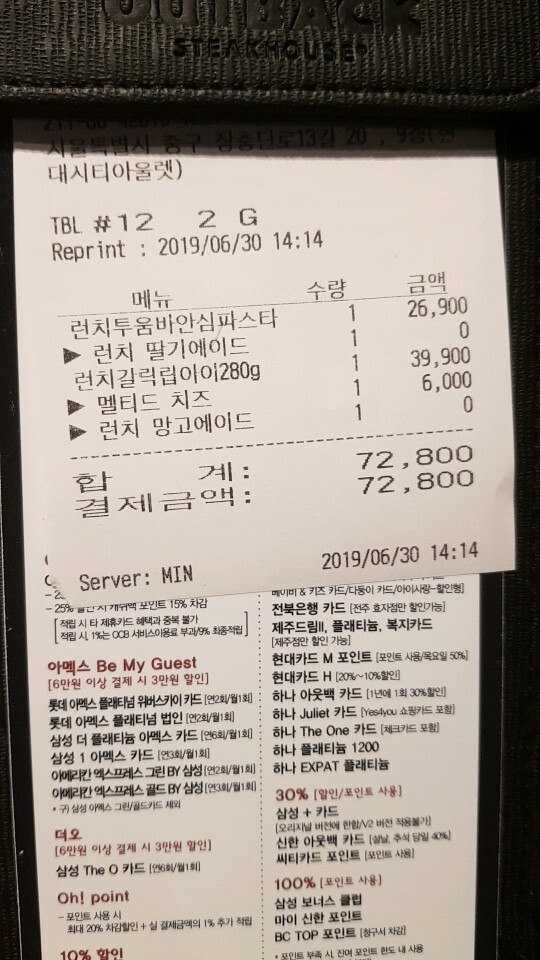 그래서 70,000원에 맞춰 2매를 사용하고 최대한 많이 먹기 위해