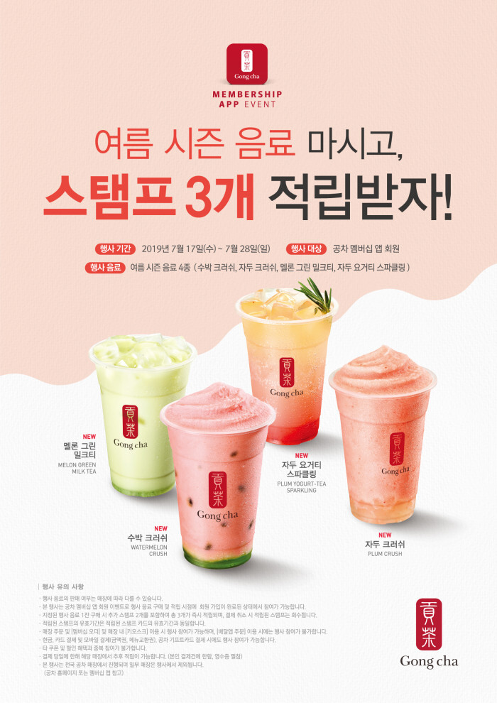 공차 여름 시즌 음료 스탬프 3개 적립 이벤트 및 여름 한정 신메뉴 소박 크러쉬 & 자두 크러쉬 후기입니다.