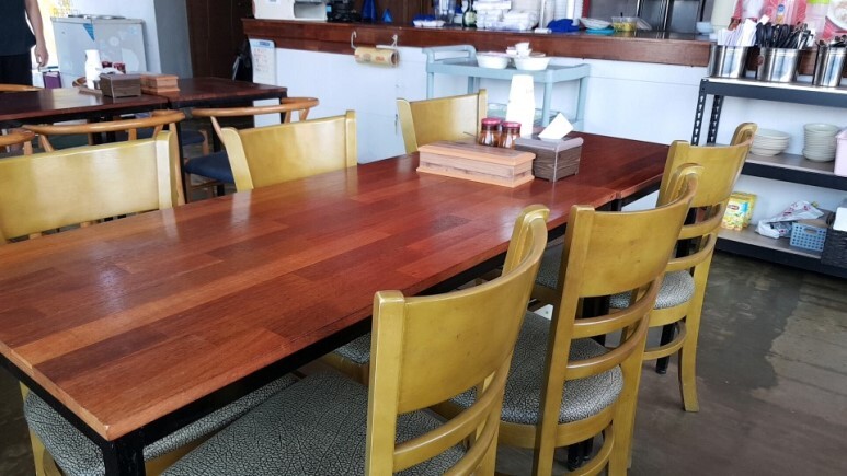 식당 내부엔 위 사진과 같은 책상과 의자들이 여럿 배치되어 있습니다. (1층)