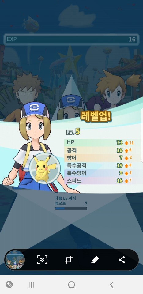 포켓몬스터 전통적 시작레벨 5레벨로 진입합니다.