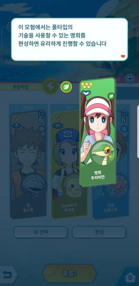 전투에 나서기 전에 풀 타입으로 준비하라고 안내를 해주네요.
