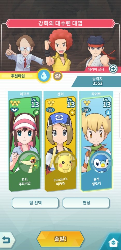 안녕하십니까. Eun🦆입니다. 지난 포켓몬 마스터즈 공략 수련편에 이어 민지편으로 찾아왔습니다. 메인 스토리로 들어가면 수련에서 강했던 사천왕 강연과 다소 약했던 민지를 만납니다.