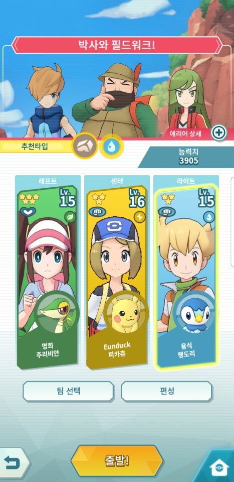 안녕하십니까. Eun🦆입니다. 지난 포켓몬 마스터즈 공략 수련편에 이어 민지편으로 찾아왔습니다. 메인 스토리로 들어가면 수련에서 강했던 사천왕 강연과 다소 약했던 민지를 만납니다.