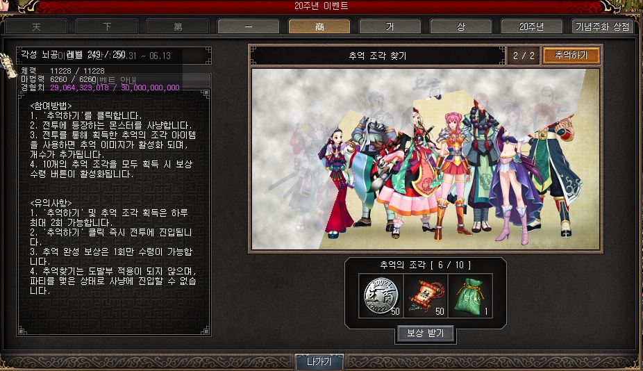 20주년 이벤트로 복귀해 아이템 잔뜩 받고 있답니다.