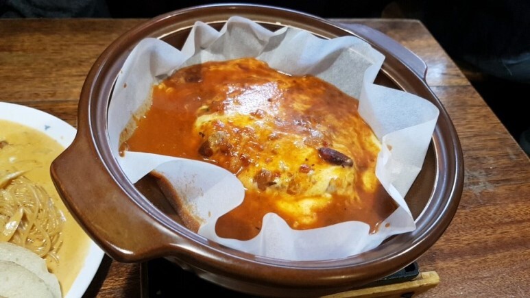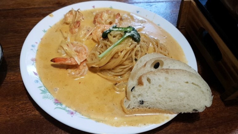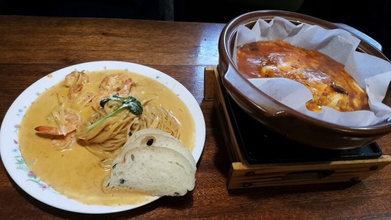 저는 파스타와 조금 매운 함박 스테이크를 주문했어요.