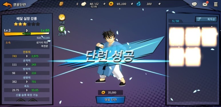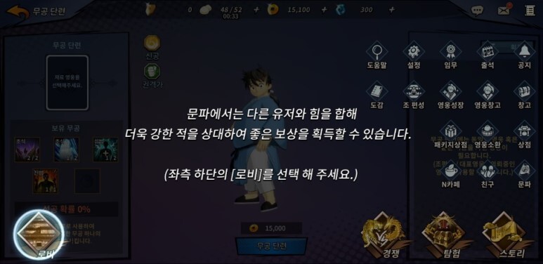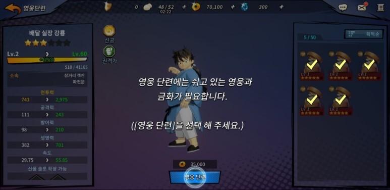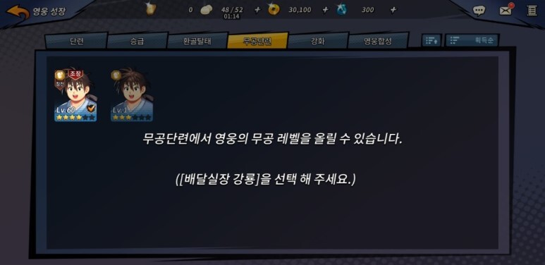 무공 단련은 동일한 영웅이 필요하다고 합니다.