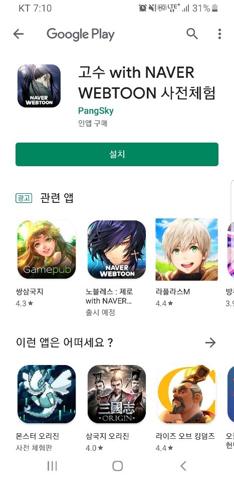 네이버 웹툰고수 모바일 게임으로 만나보기