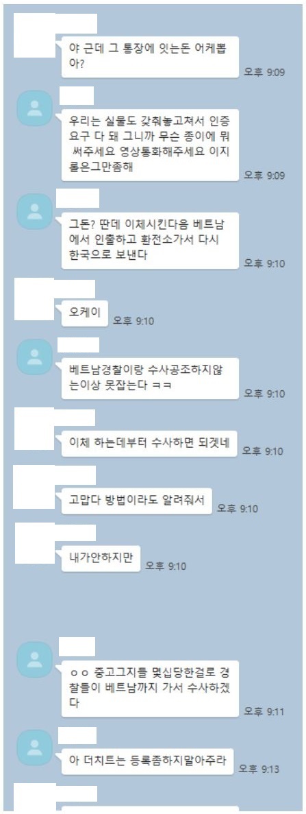 본인은 집단이며 베트남으로 돈을 보내 세탁할 것이므로