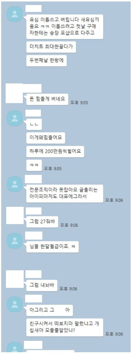 대포폰, 대포통장, 해킹한 네이버 아이디, 대포에그를 사용한다.