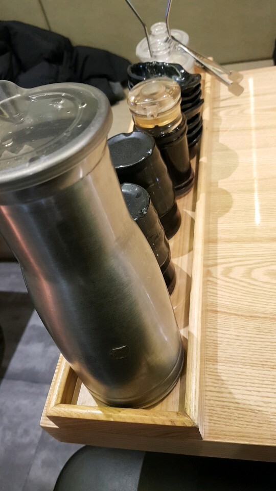 식당 안으로 들어서면 이렇게 세팅이 되어 있고 주문시 샐러드와 장국이 나옵니다.