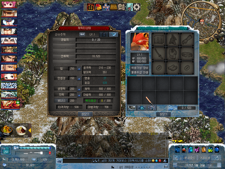 여기서 서로 다른 환수 석상의 레벨의 평균으로 신수 주작의 처음 보너스 스텟이 조정됩니다.