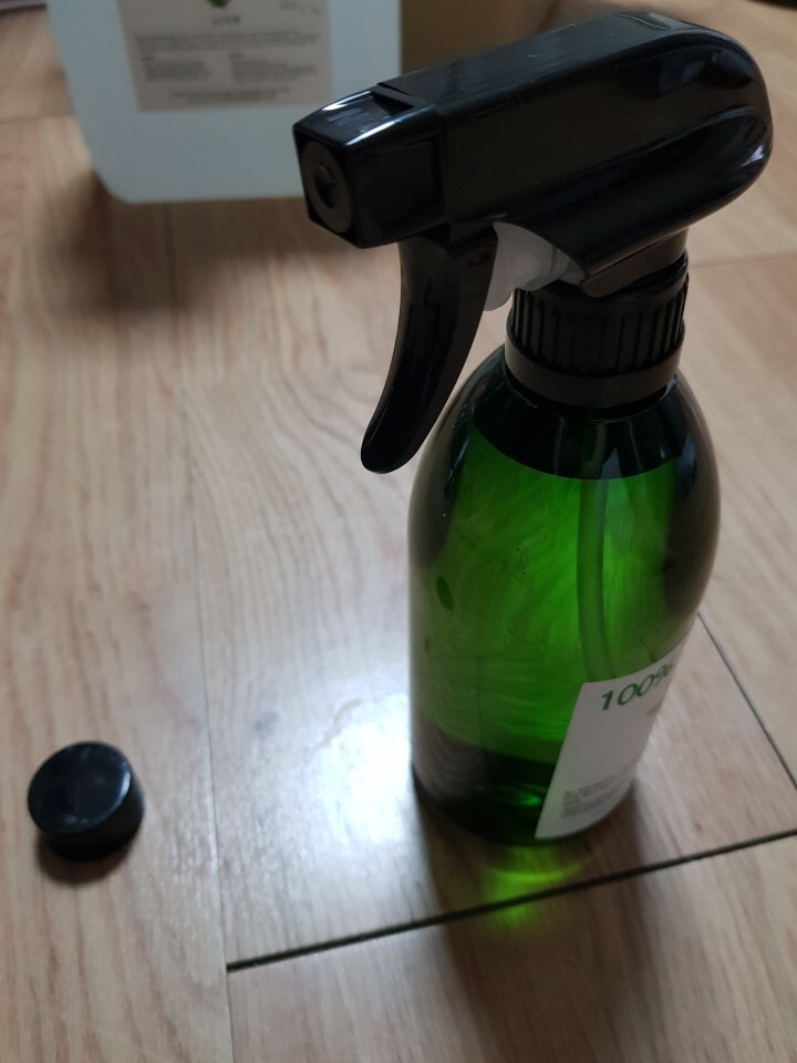 왼쪽은 스프레이 통, 오른쪽은 4L짜리 큰 통입니다.