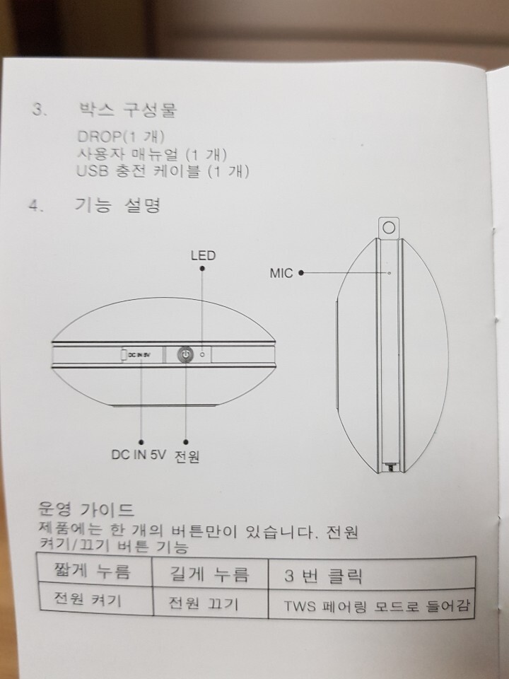 개봉해보면 스피커와 방부제(?), 충전선이 포함되어 있습니다.