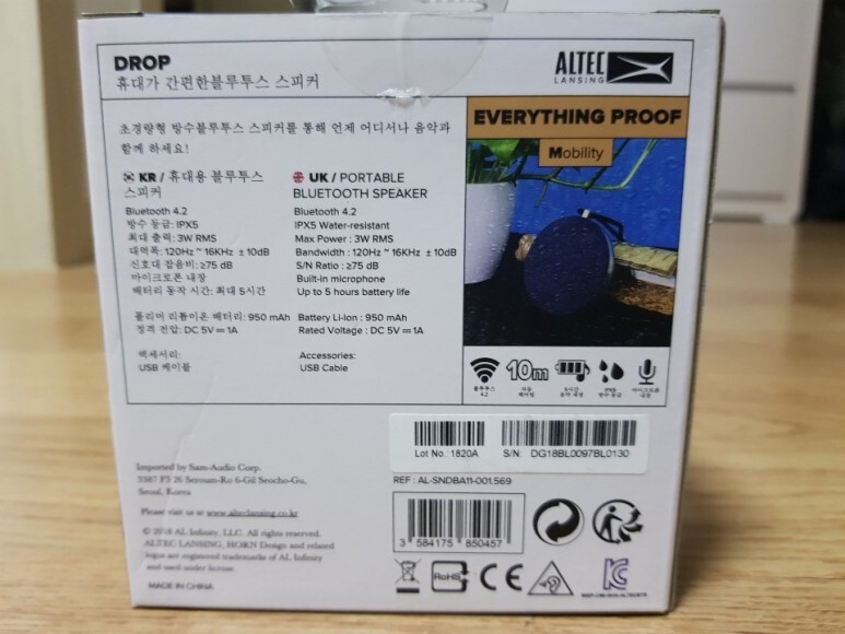 오늘은 휴대용 방수 블루투스 스피커인 ALTEC DROP을 리뷰해보고자 합니다.