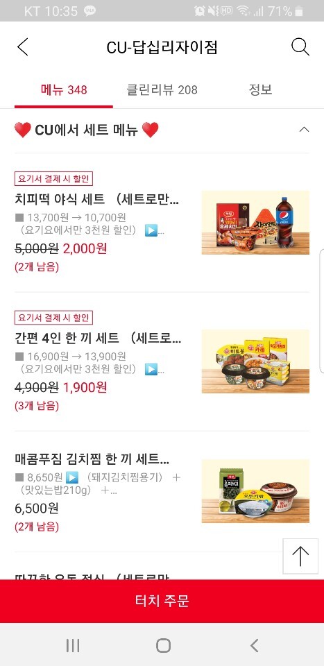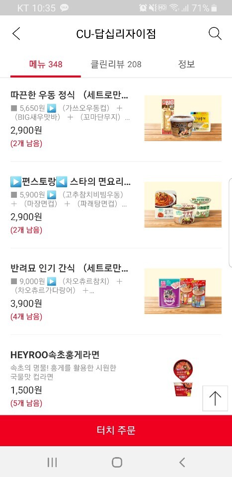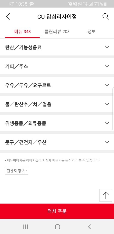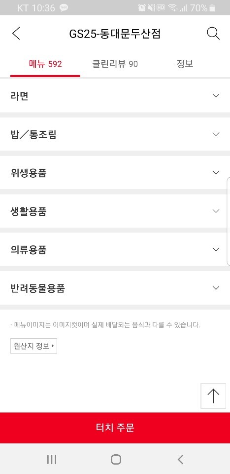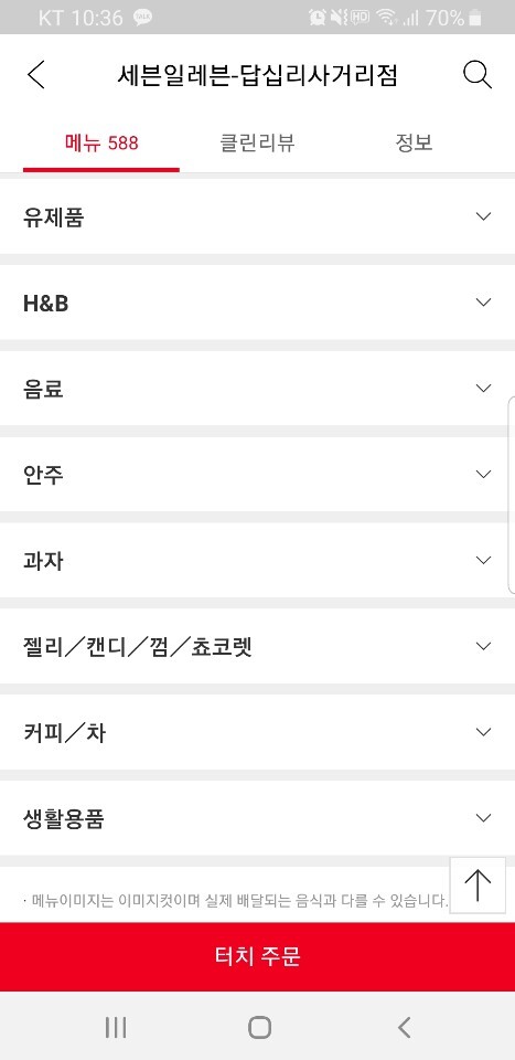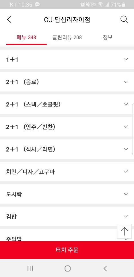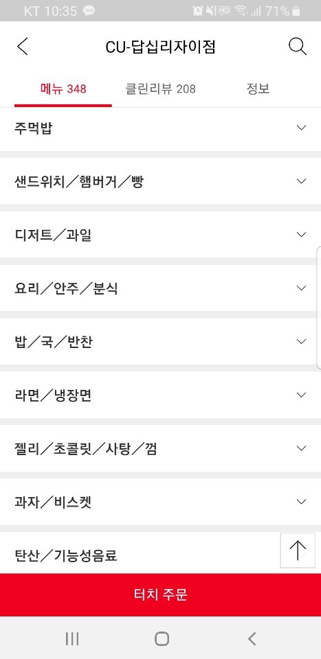 역시나 GS25 처럼 세분화된 메뉴에서 원하는 메뉴를 선택하실 수 있습니다.