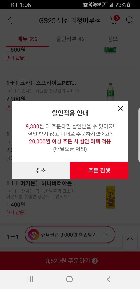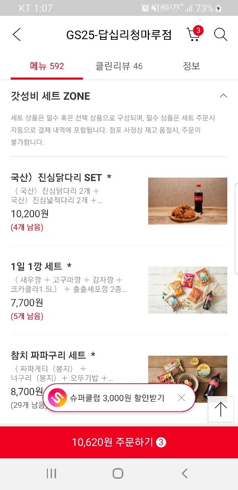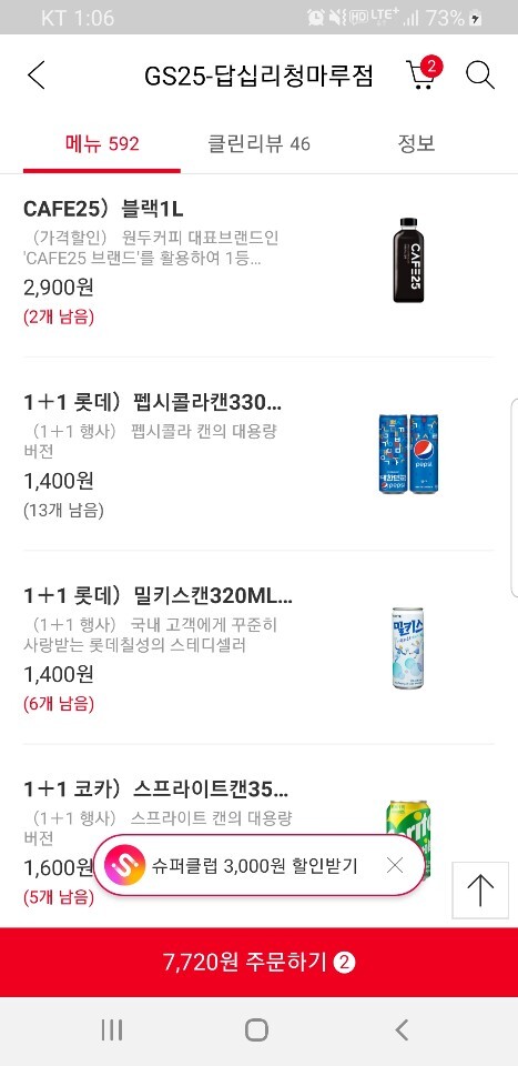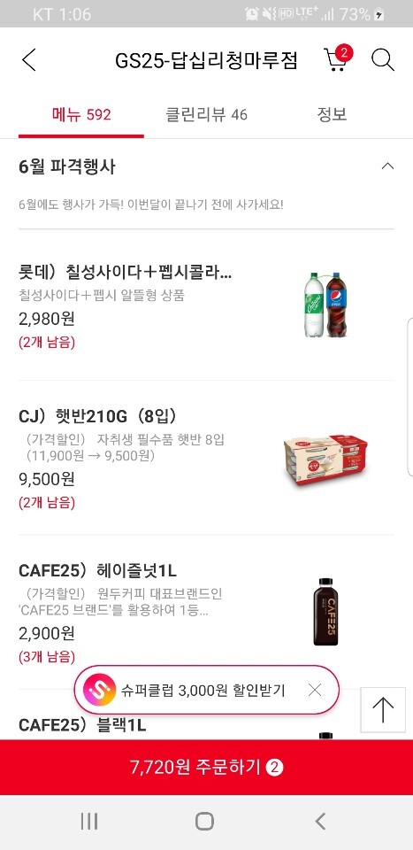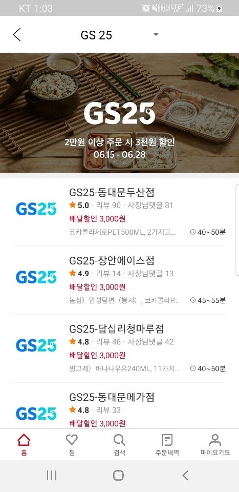 전 메뉴 3천원 중복할인이 있는 GS25에서 직접 한번 배달해보겠습니다!