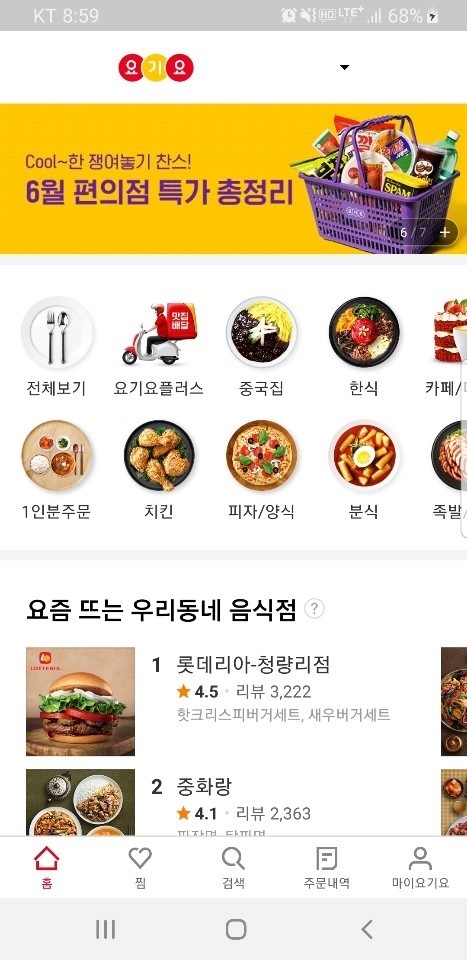 또한 요기요 홈 카테고리 중 편의점/마트 카테고리에서는