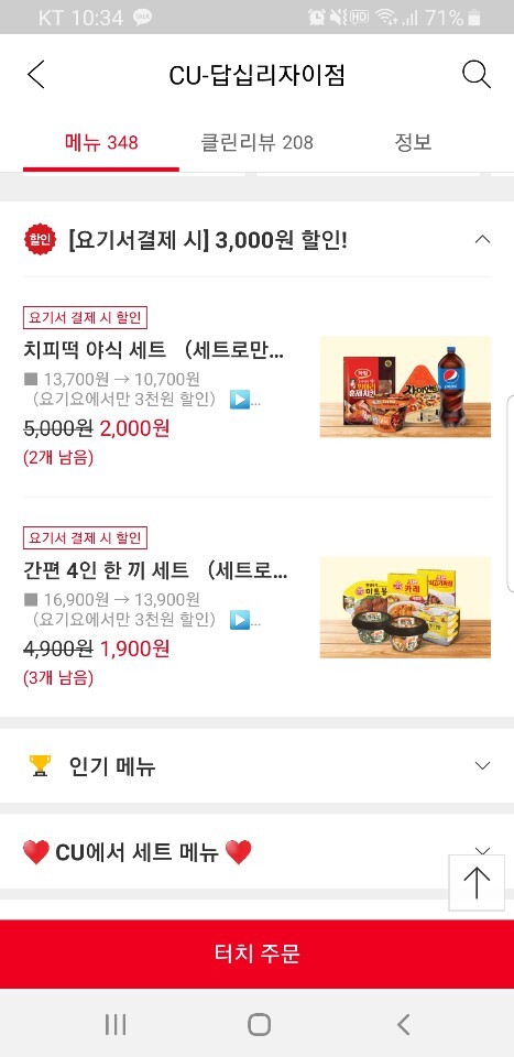 CU에서는 요기서결제 시 3000원 할인 받는 메뉴 등 다양하고 참신한 메뉴들이 있어요!