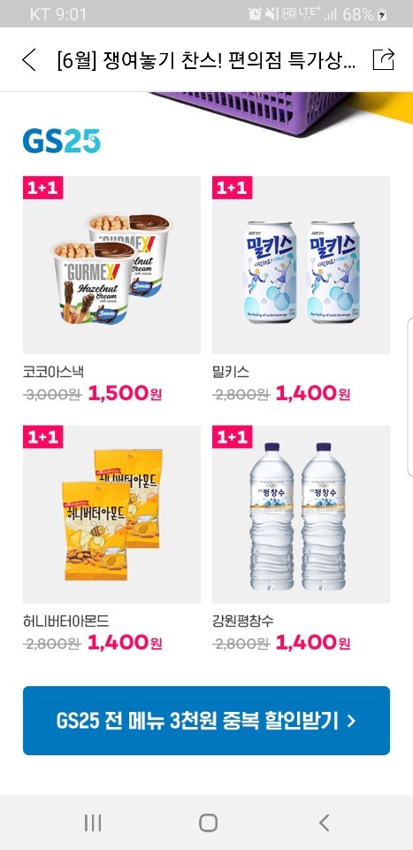 아래 보시면 GS25의 3000원 중복 할인까지 확인하실 수 있어요!
