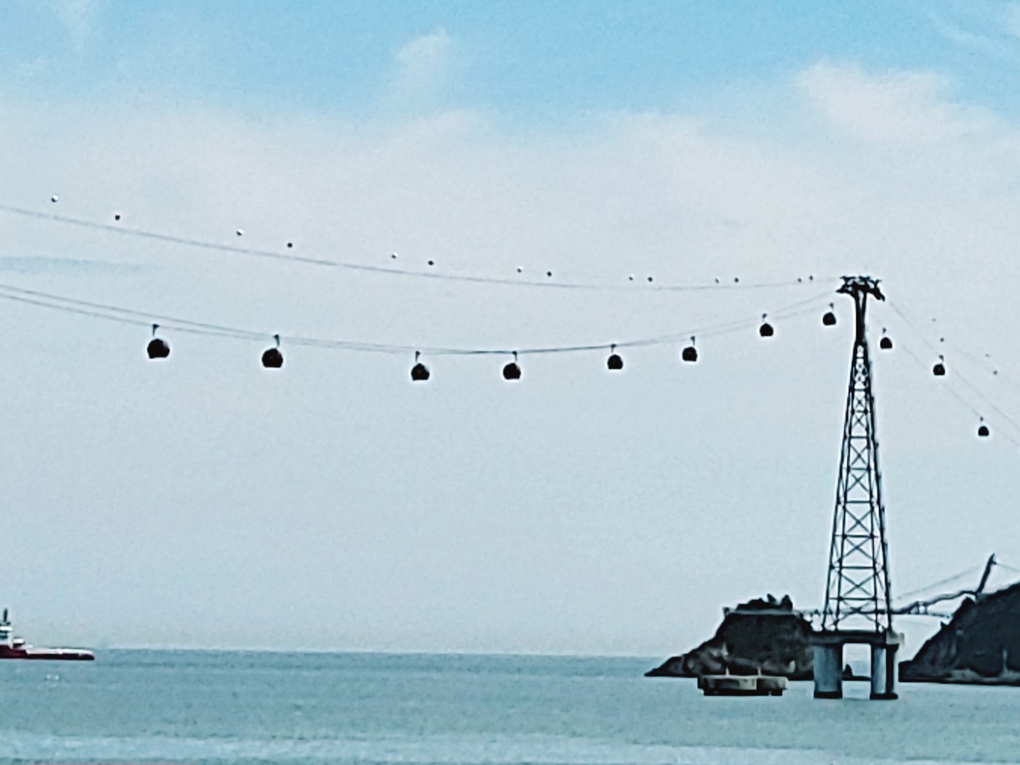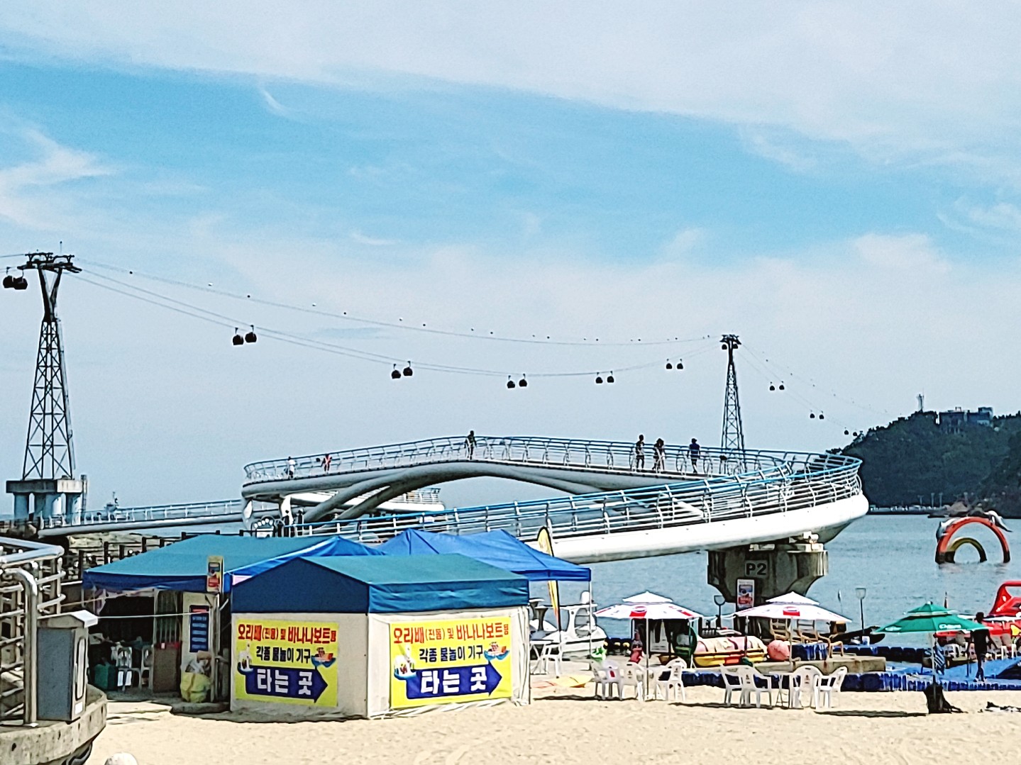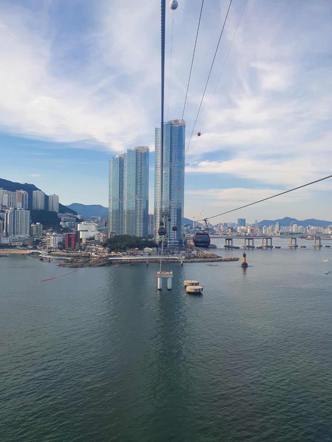 그리고 다리 위 너머로 보이는 송도해상케이블카