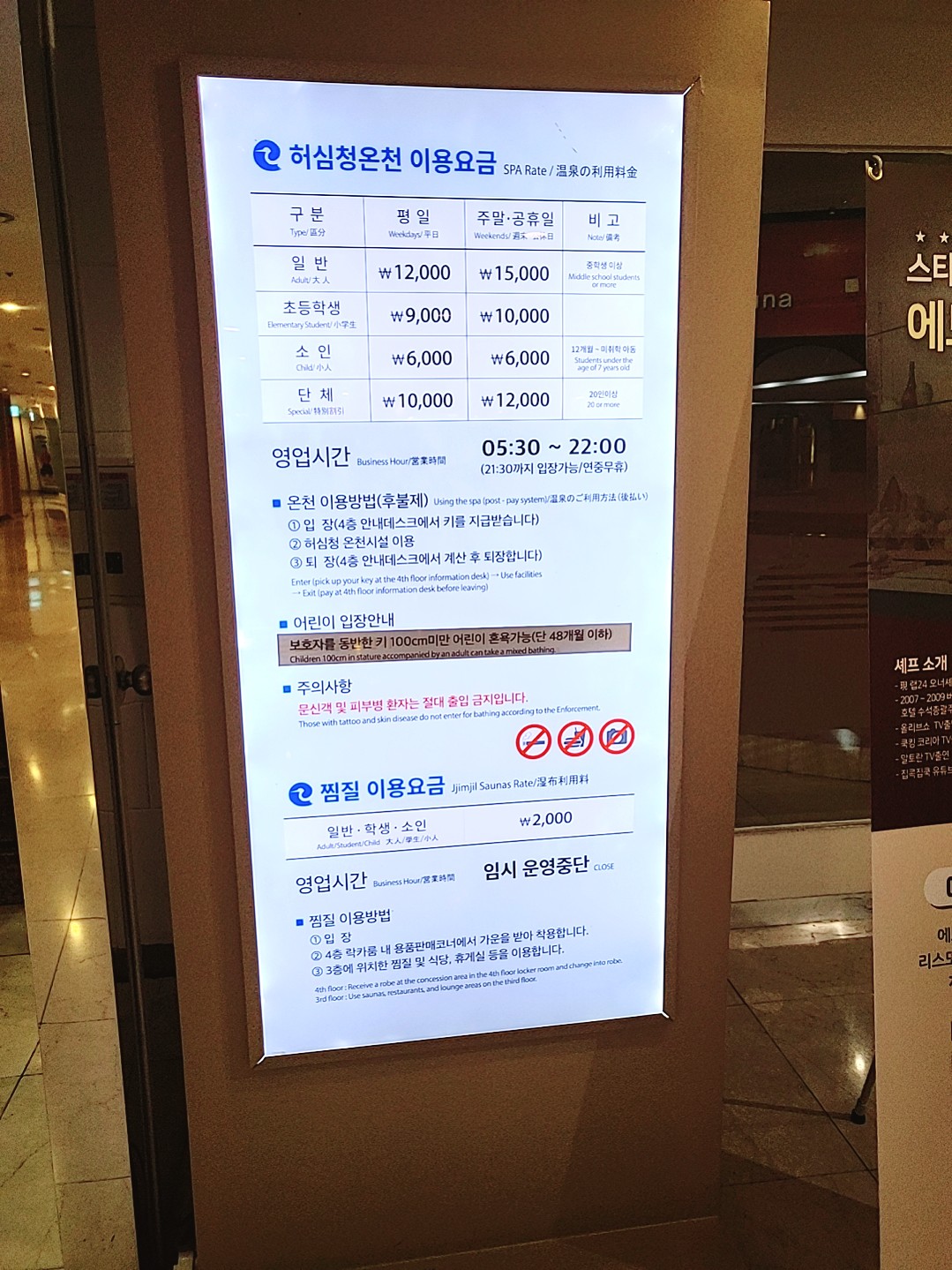 아쉽게도 찜질방은 이 날 코로나로 진행하지 않아 못봤네요 ㅠ
