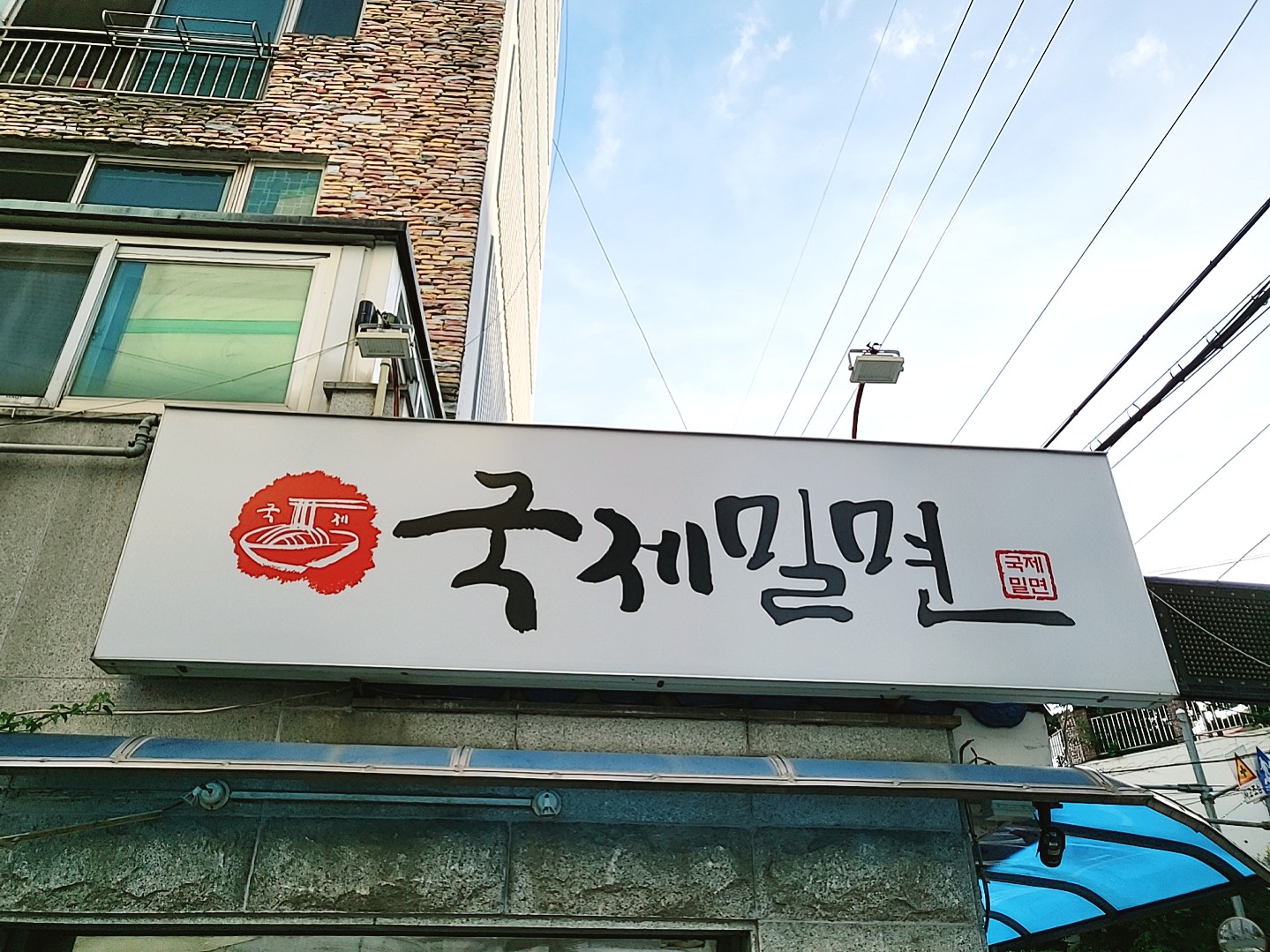 송도해상케이블카에 이어 허기진 배를 달래기 위해 온 밀면맛집 국제밀면 입니다.