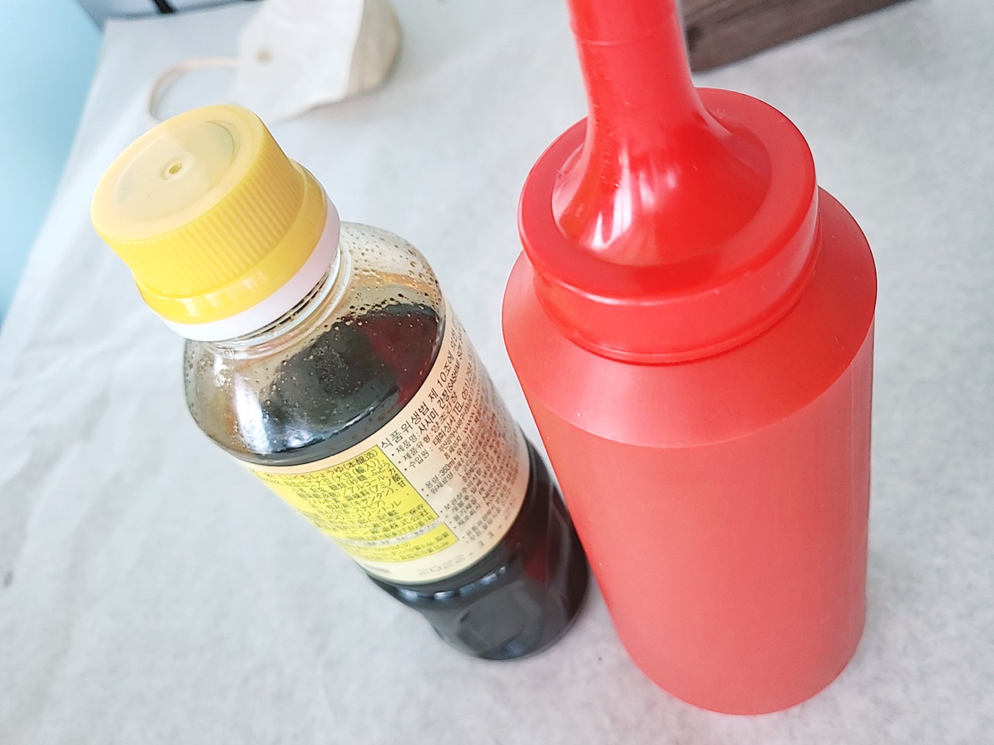 잘 깔린 상에 간장, 초고추장, 소스가 나왔습니다.