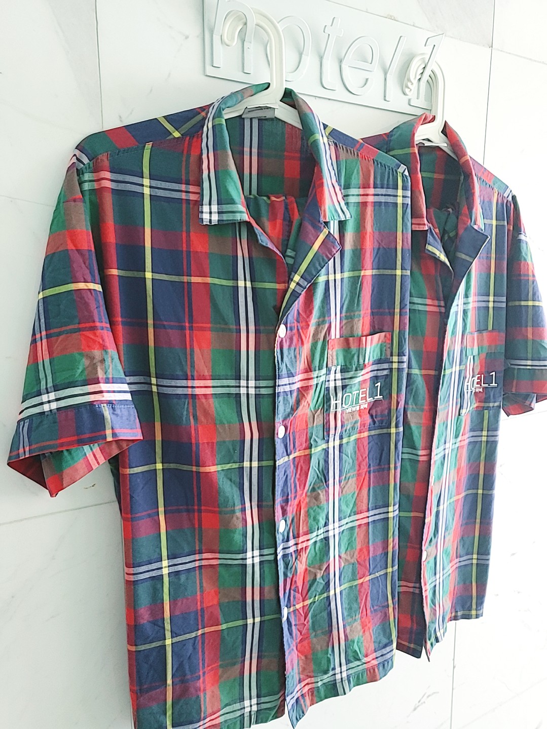 뭔가 크리스마스가 생각나는 파자마와 샤워시설도 보입니다.