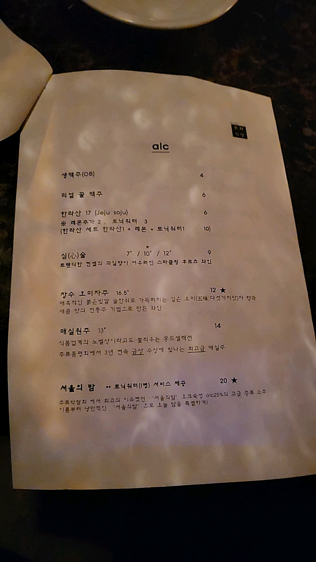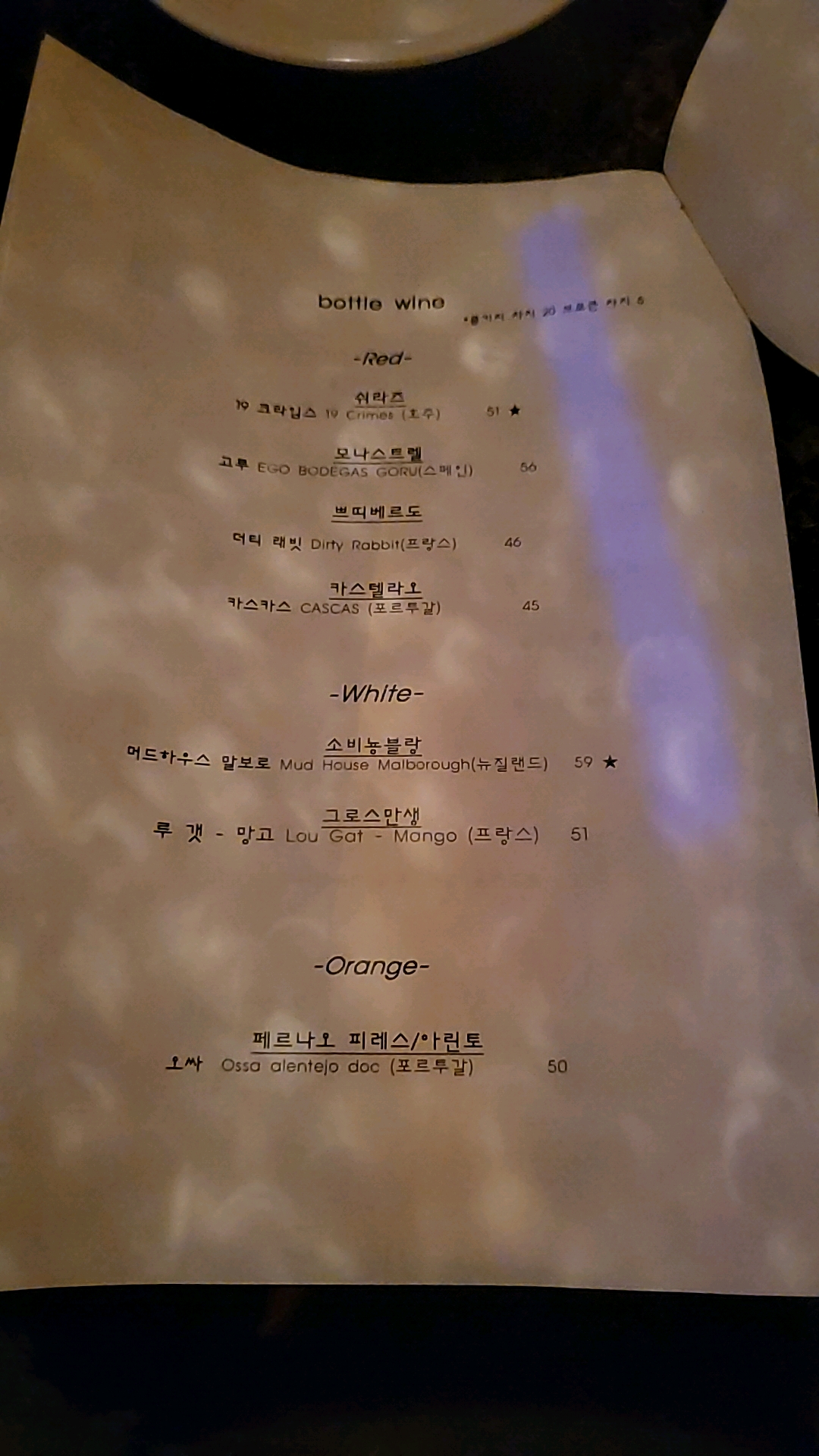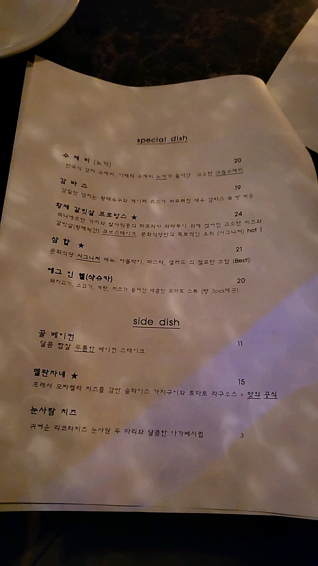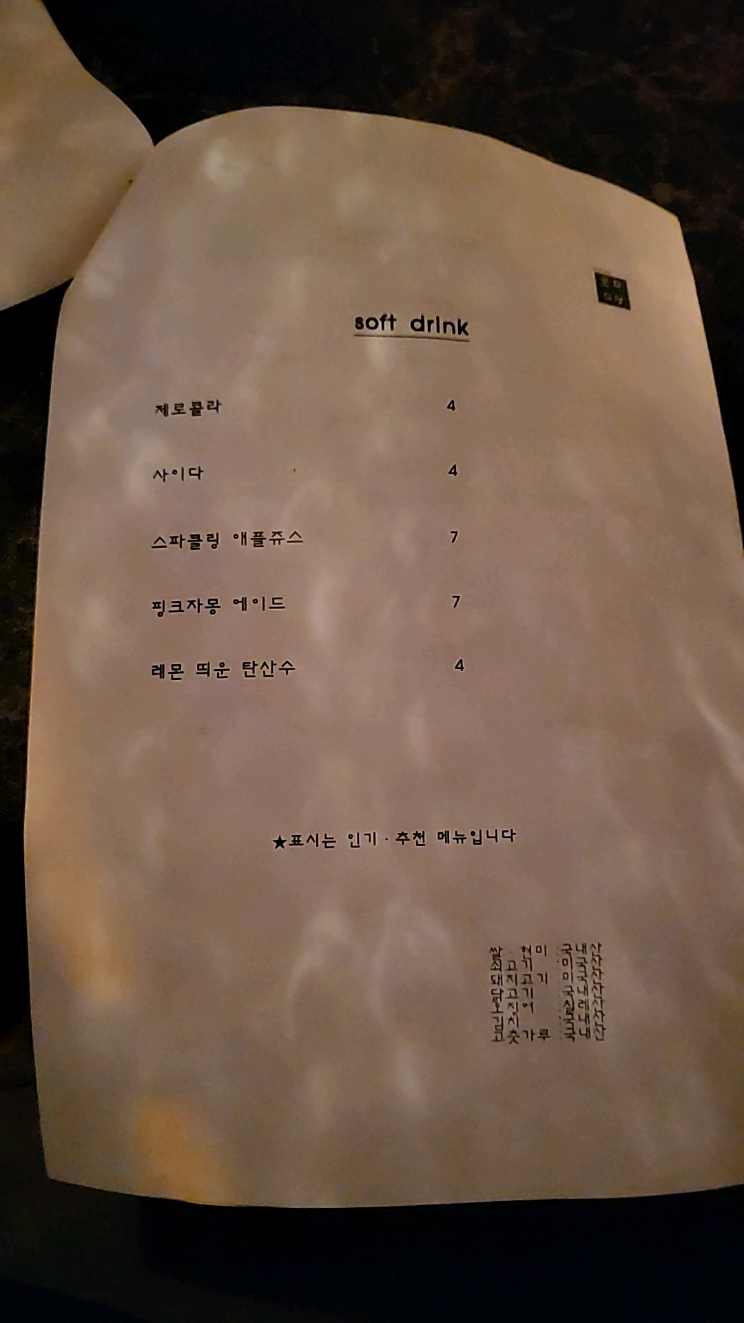 메뉴판입니다.