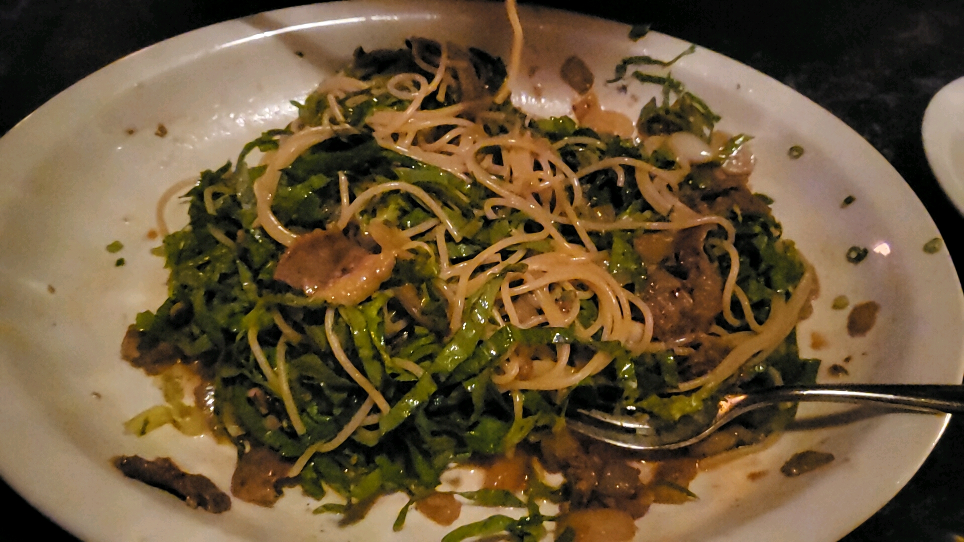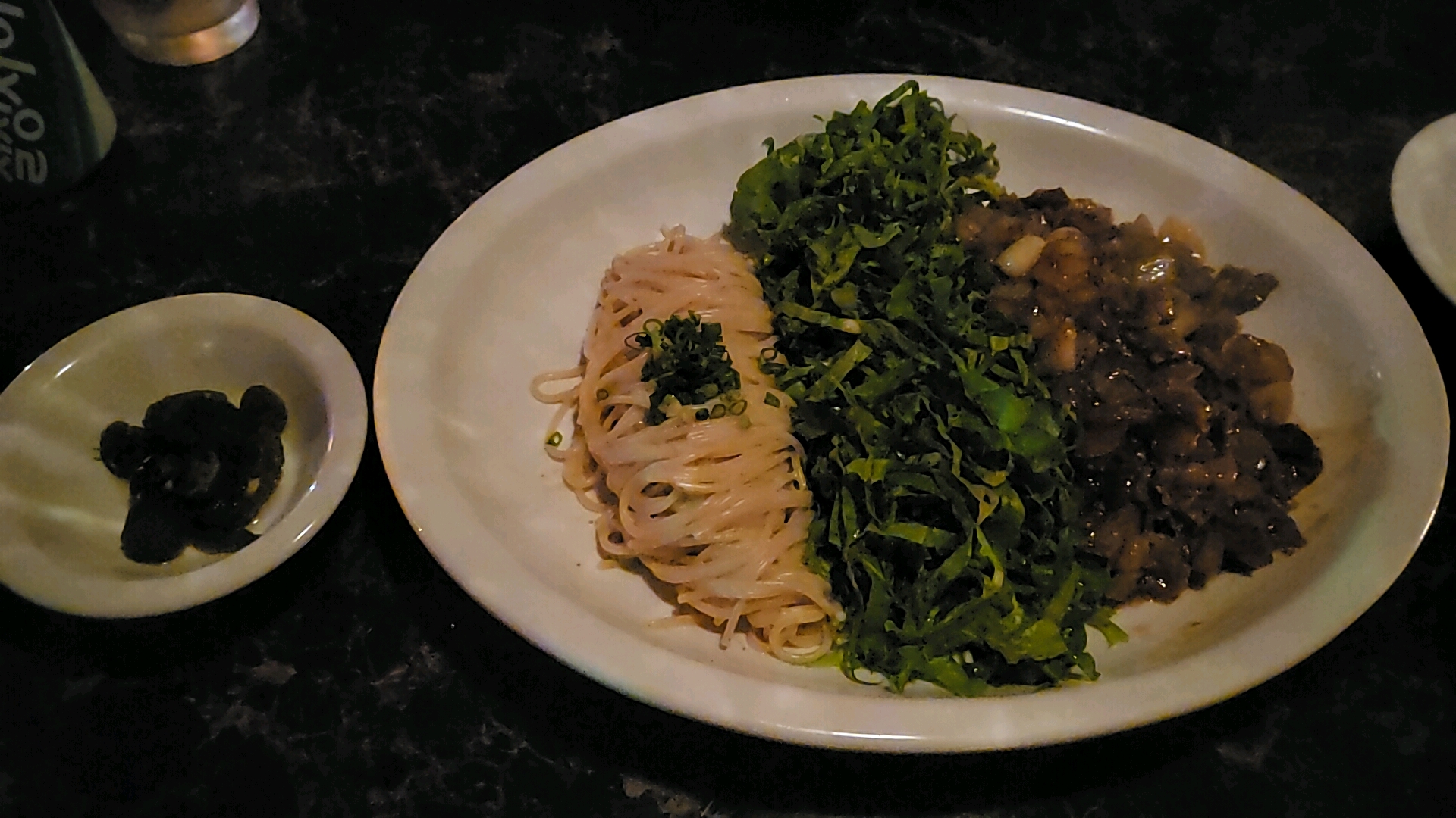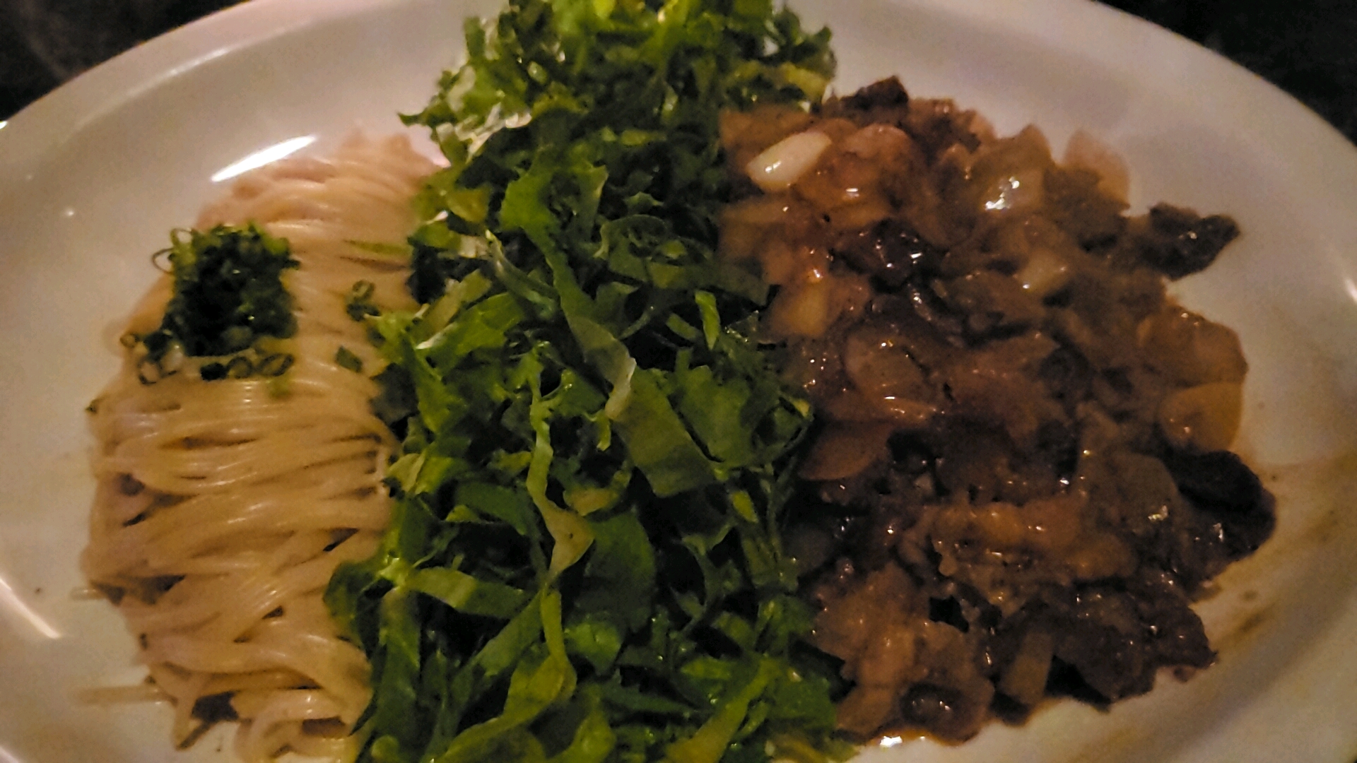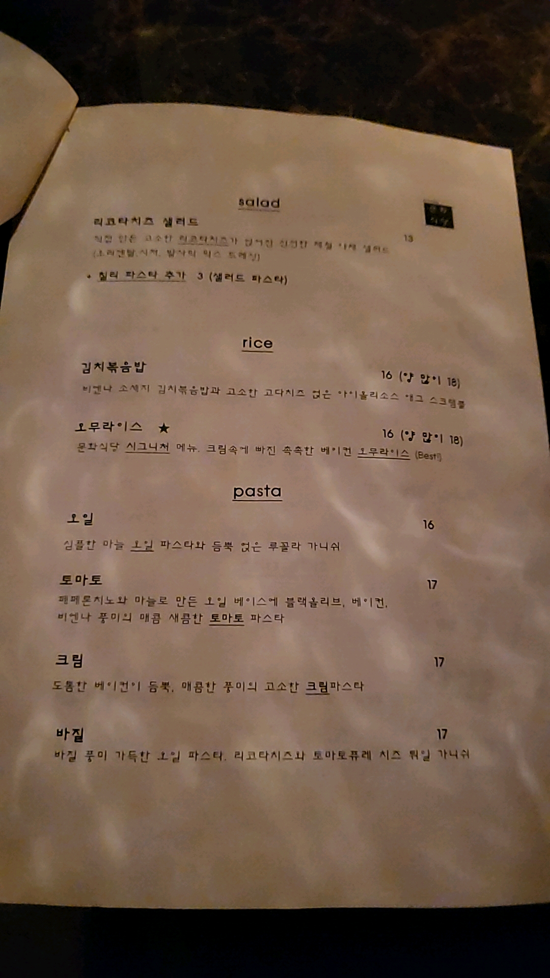 특이한 차돌박이, 파스타, 샐러드의 삼합