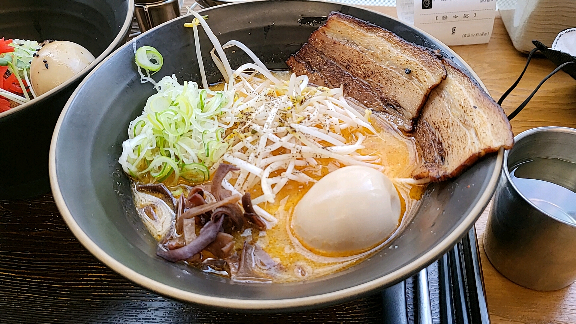 드디어 나온 돈코츠라멘(맵기 중간)과 차슈 덮밥
