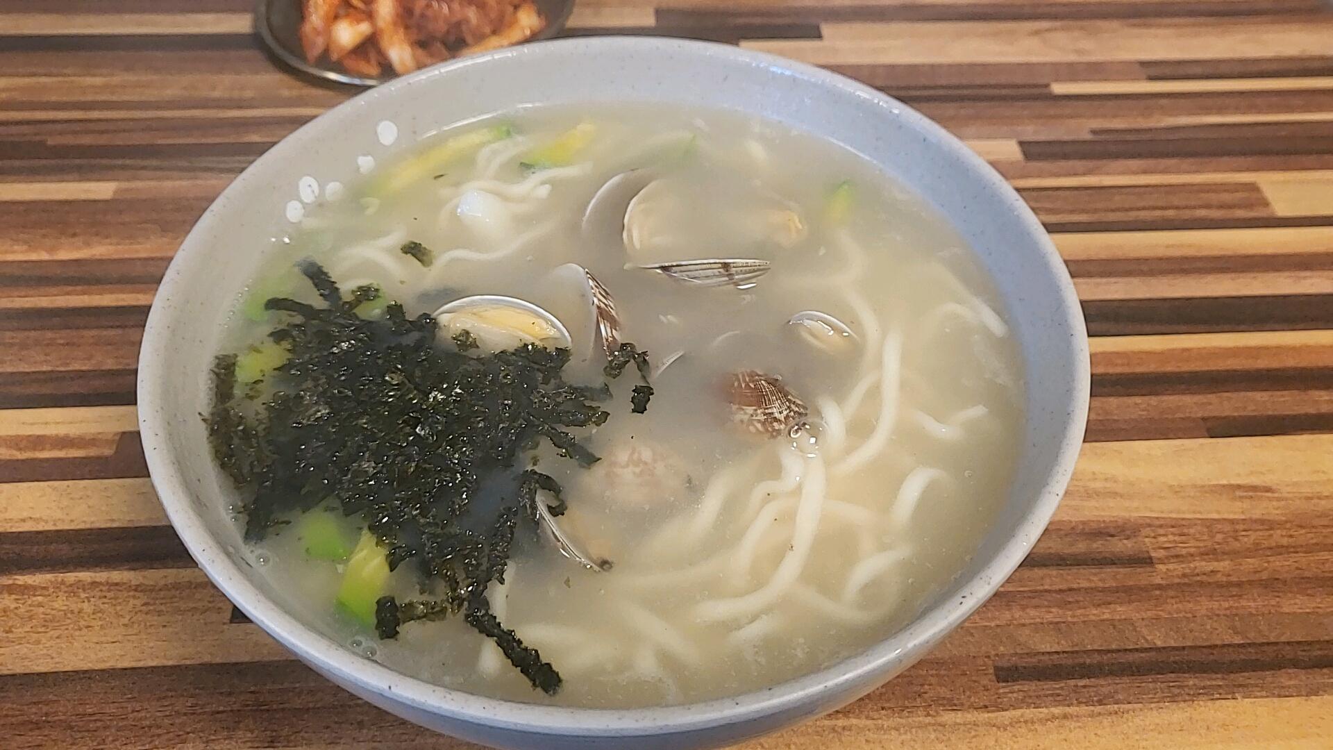 바지락 국물이 시원하게 목 넘김이 좋았고, 면은 얇고 꼬들꼬들해서 아주 먹기 좋았습니다.