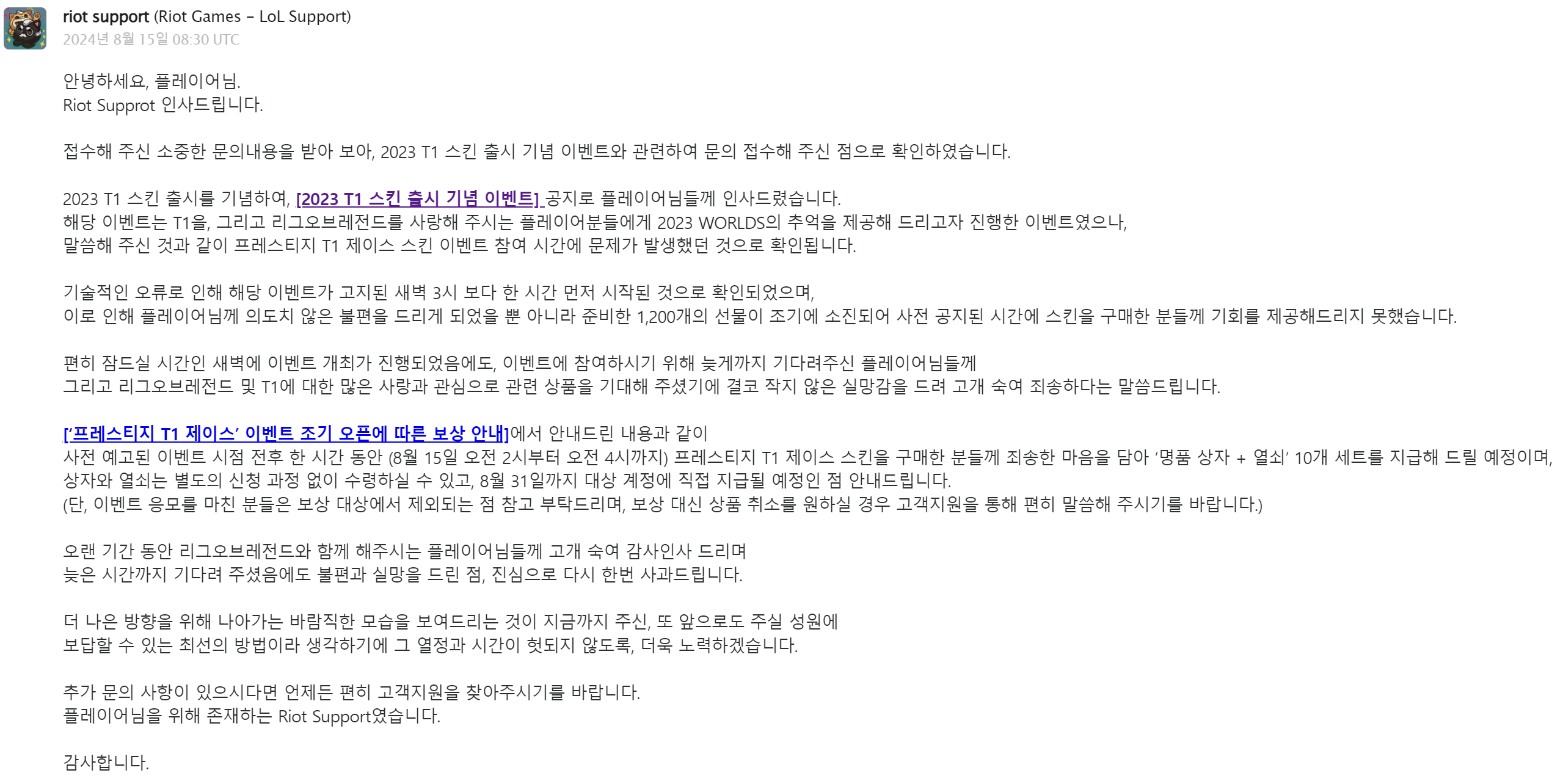 잠이 덜 깼음에도 뭔가 잘못되었음을 느껴 라이엇에 문의했었고